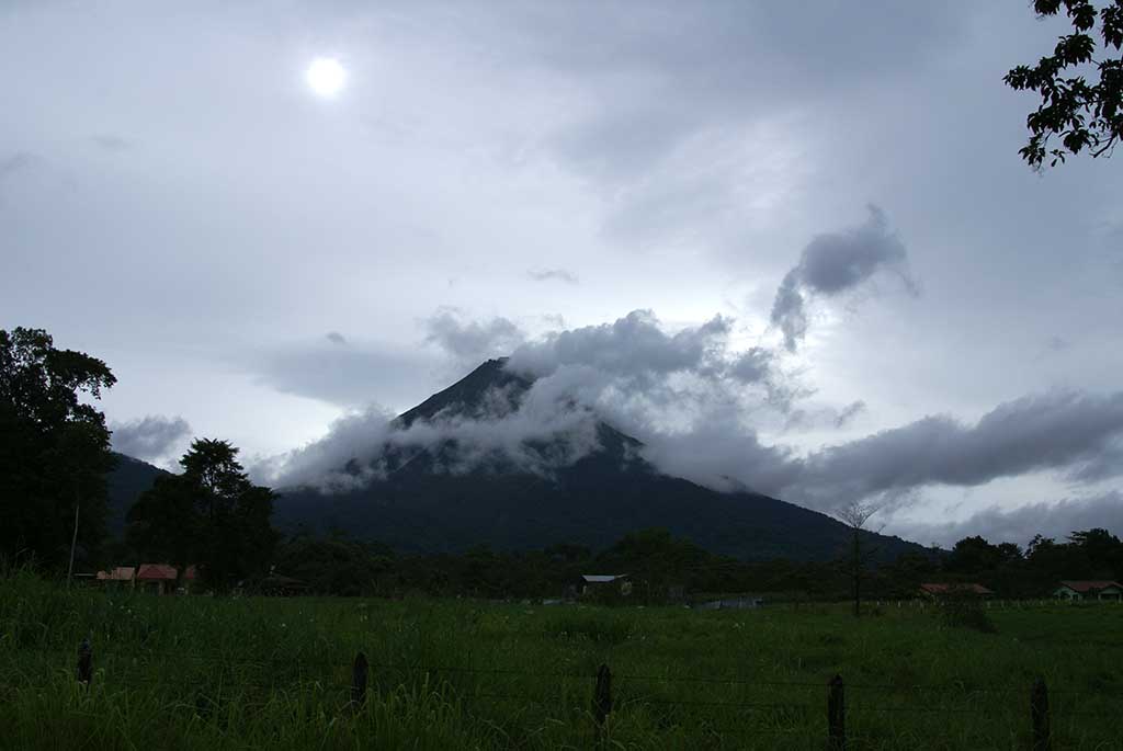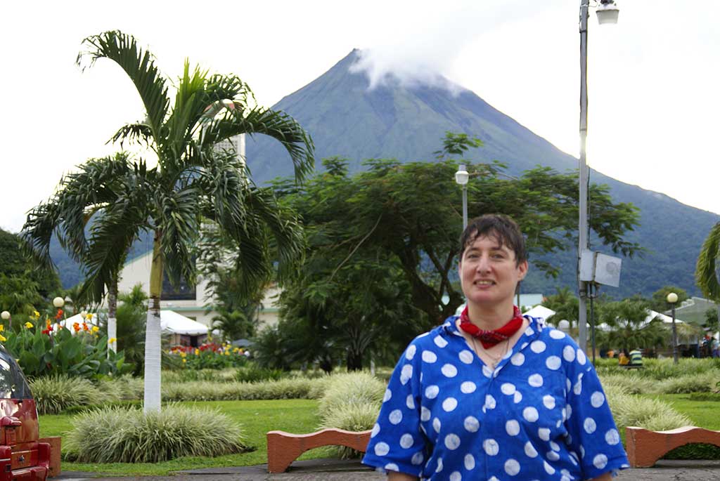 This morning I bounced out of bed at 6am. Lidia heard me, awoke and made me breakfast. I wanted to take morning pictures then come back and eat. That’s okay. After I ate I walked to a point to take a photo of the volcano. There was no place to set up my tripod so I asked a construction worker to take a photo of me with Arenal volcano in the background. He was very nice and I don’t think I understood enough of what he was saying.