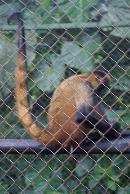 The morning and afternoon meal for the animals were slightly different. No vitamins were included today. We feed the monkeys bananas, the Capuchin monkey (Benjamin) has us peel his bananas, but the others (Kinkajou) peel their own There are lots of bananas, the staff pick them when they are green and when they want to ripen them they put a dark cloth over them on a rack and they turn yellow.