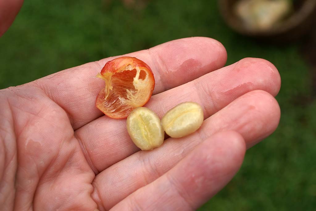 The fruit of the plant will have either one of two beans inside. Peaberry is more rare and that is the one bean coffee fruit. The separator is done by water . The heavier the fruit the more robust flavor. These are grade 1 there are 3 grades. Grades two and 3 have less flavor.