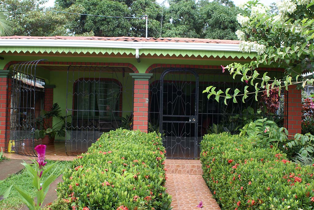My home-stay is very nice. Dona Lidia has 4 bedrooms, all line one side of the house. The other side is a small living open room with chairs and a car to the other side of the house as a beautiful iron window finishes and one wall is all iron in a design of the sun and waves going across.